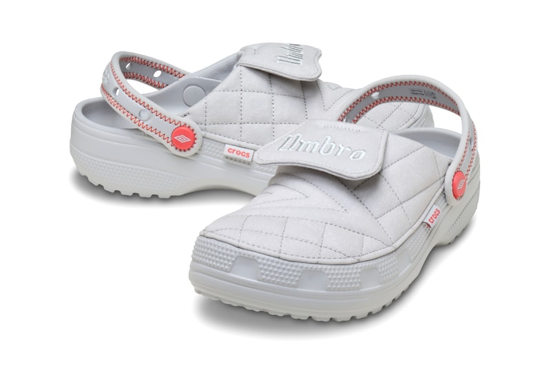 Leading the footwear lineup is the Umbro Crafted Clog, which completely updates the standard slip-on with a quilted washed textile upper. The model integrates Umbro’s signature Double Diamond motif alongside a faux tongue that bears the sportswear brand’s name in an archival typeface. For added customization, Jibbitz charms-ready holes are strategically placed on the backstrap, where both brands’ logos also reside.